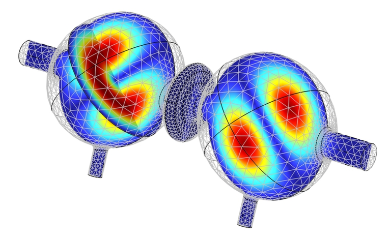 MAGO cavity: electric field profile of the TE011 pair of the quasi-degenerate symmetric and anti-symmetric modes which are coupled by a passing GW.